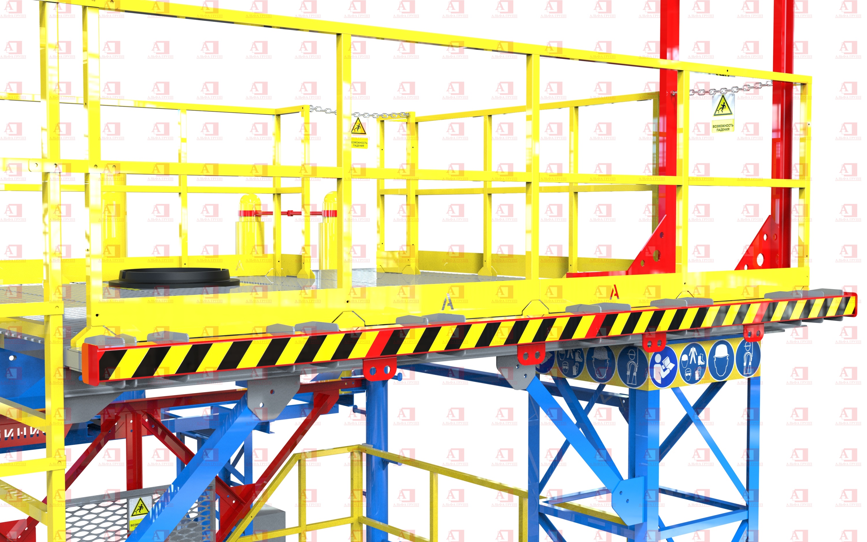 Для защиты от риска падения комплекс оснащен перилами и защитным ограждением высотой не менее 1100 мм.