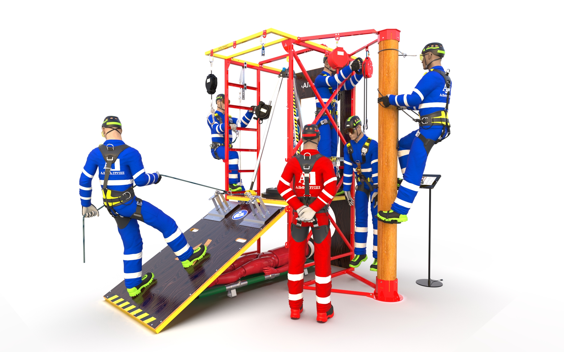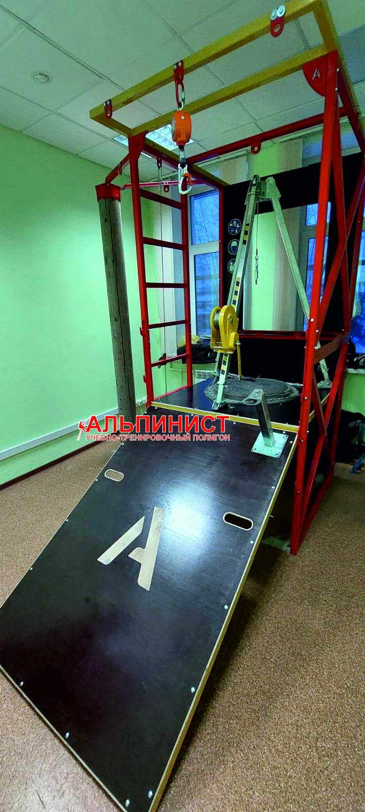 Тренажёр «Альпинист» предназначен для отработки навыков работы на высоте в учебных классах и центрах. Он представляет собой бюджетную и функциональную учебную конструкцию, которую можно легко транспортировать и устанавливать в различных местах для обучения сотрудников предприятий.