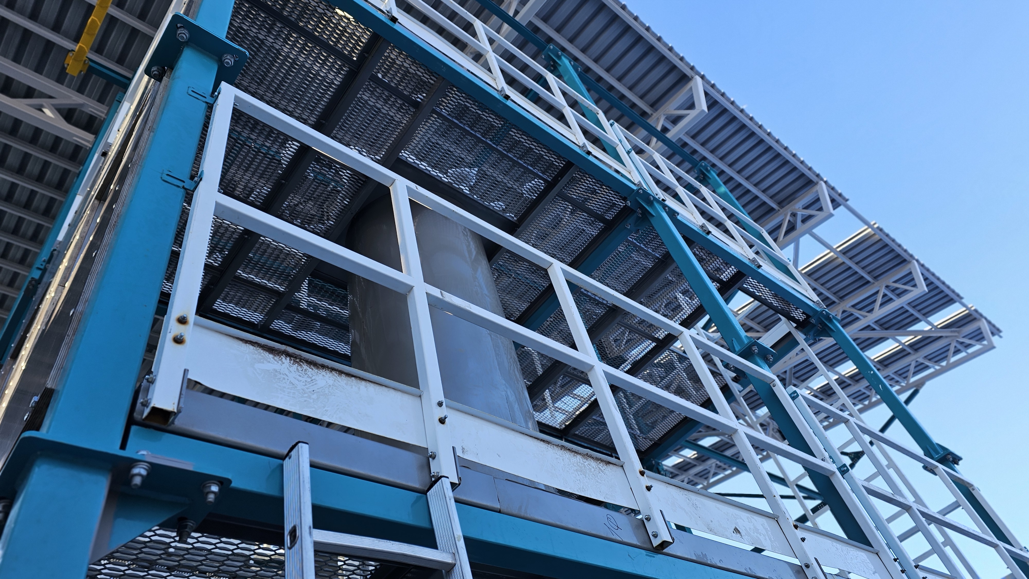Основу полигона составляет стальная цилиндрическая конструкция, оснащенная комплексом технологического оборудования. С внешней стороны расположены маршевые лестницы с ограждениями, ведущие на верхнюю рабочую площадку. Площадка оборудована консольной балкой для отработки спусковых операций и технологическим колодцем для доступа во внутреннее пространство.